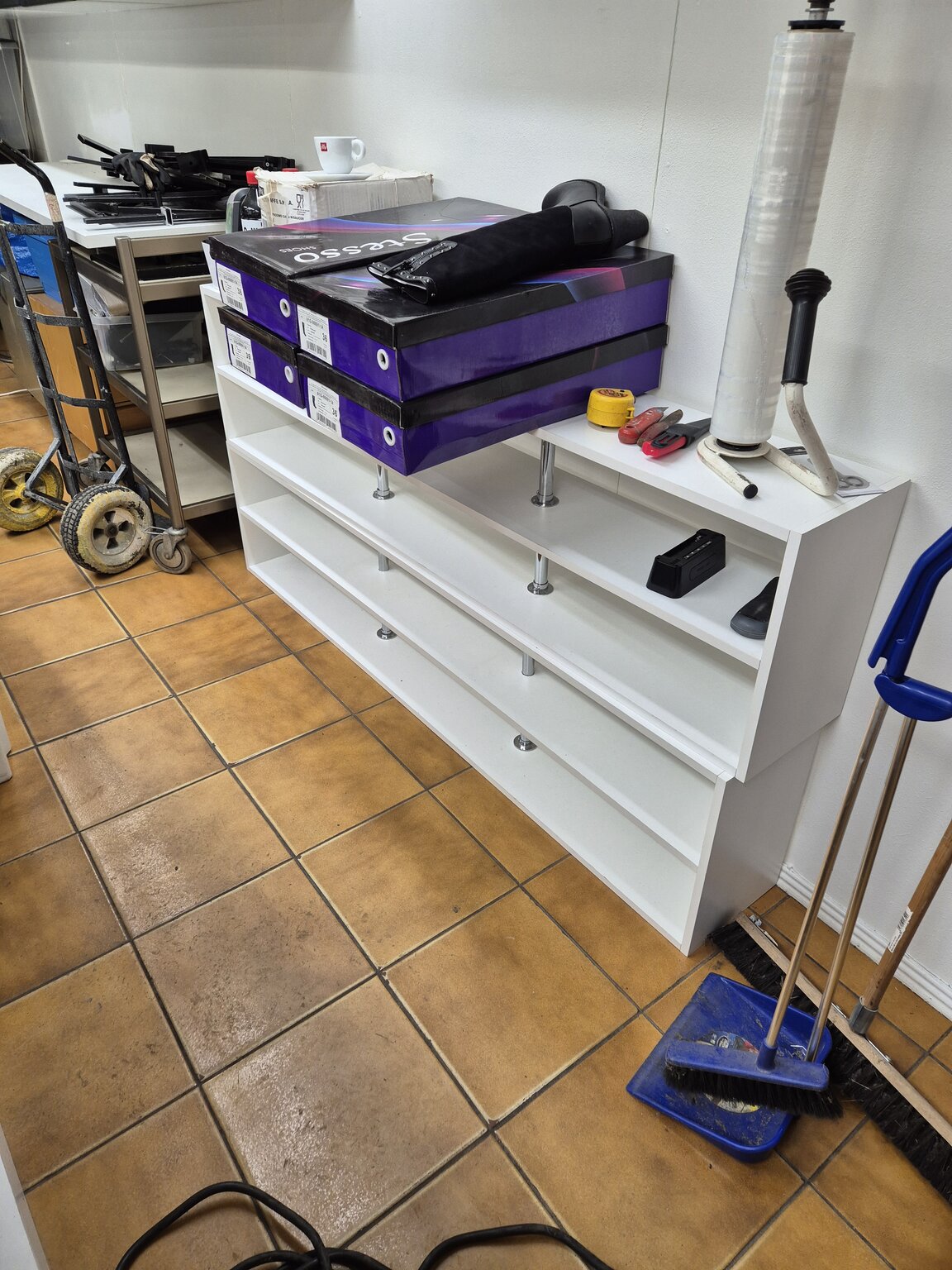 -myymälän valkoist moniosaiset hyllyt