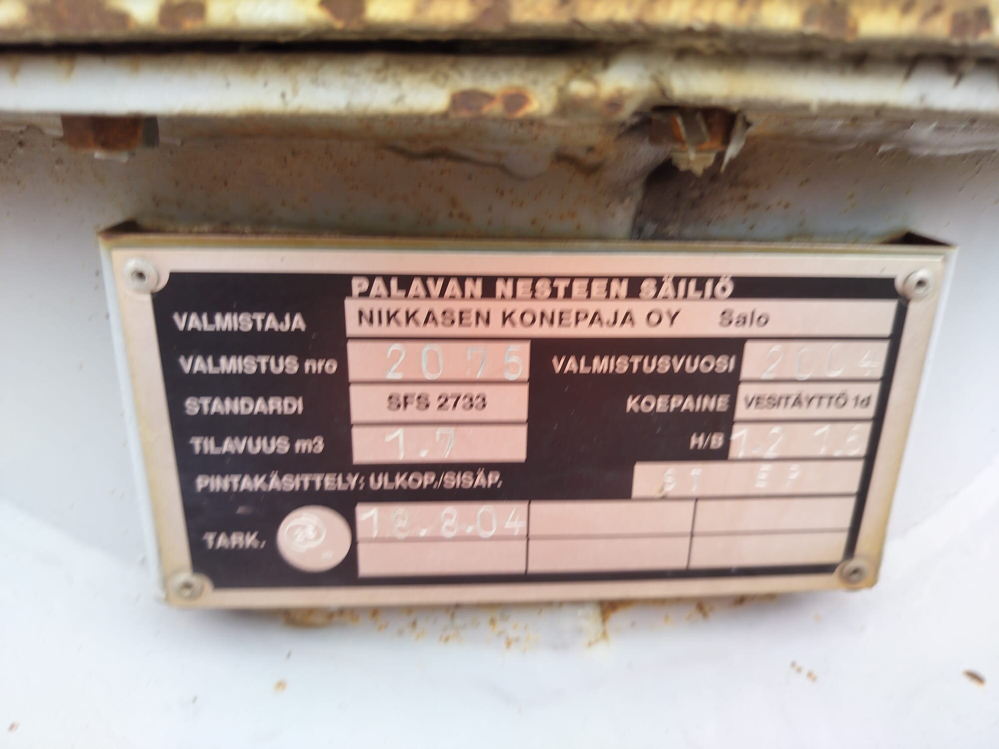 -1,5 m3 palavan nesteen säiliö pumpulla