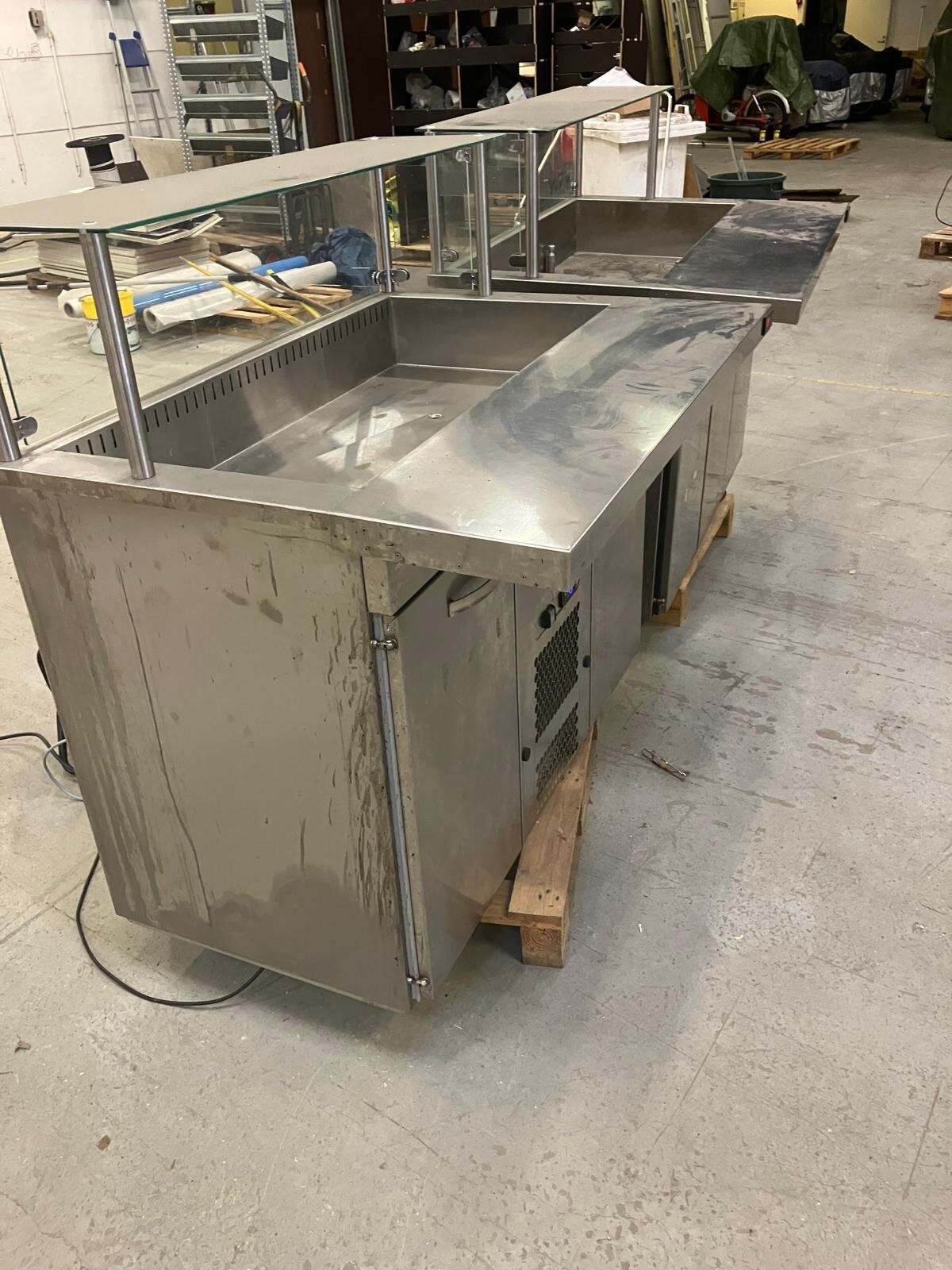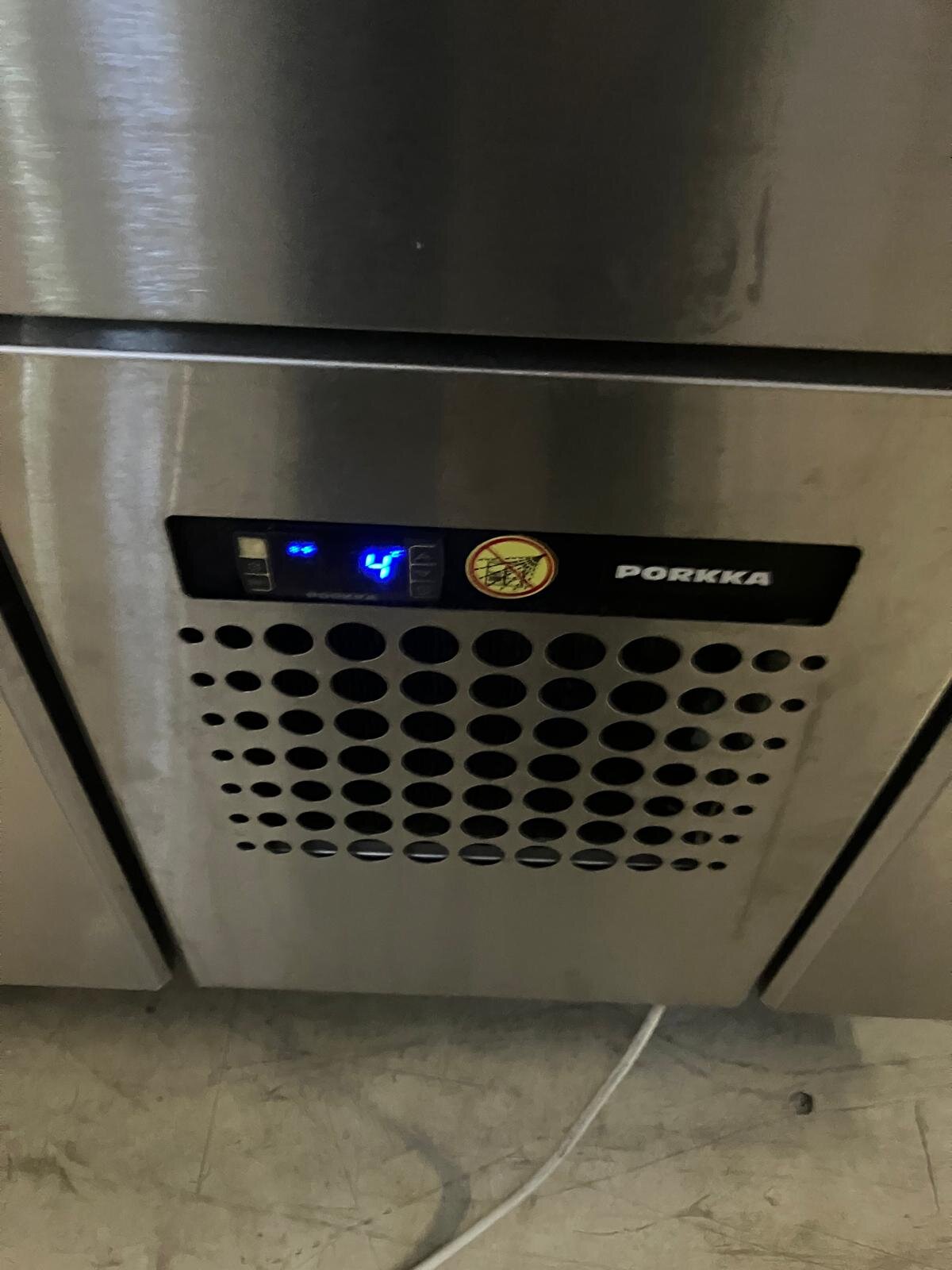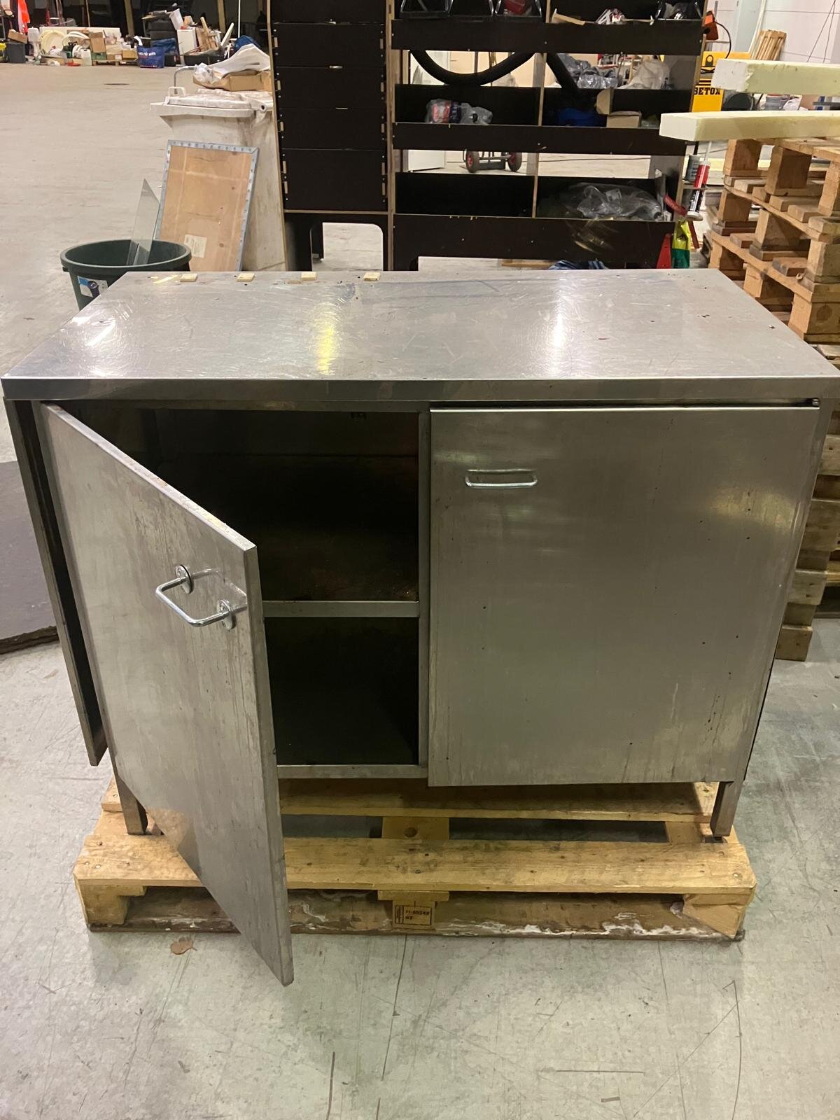 pakastin, juomakaappi 180 cm teräslaatikosto 40 cm, rasvakeitin, kaasuhella 2.lla polttimella, kiertoilmauuni, teräshyllyt