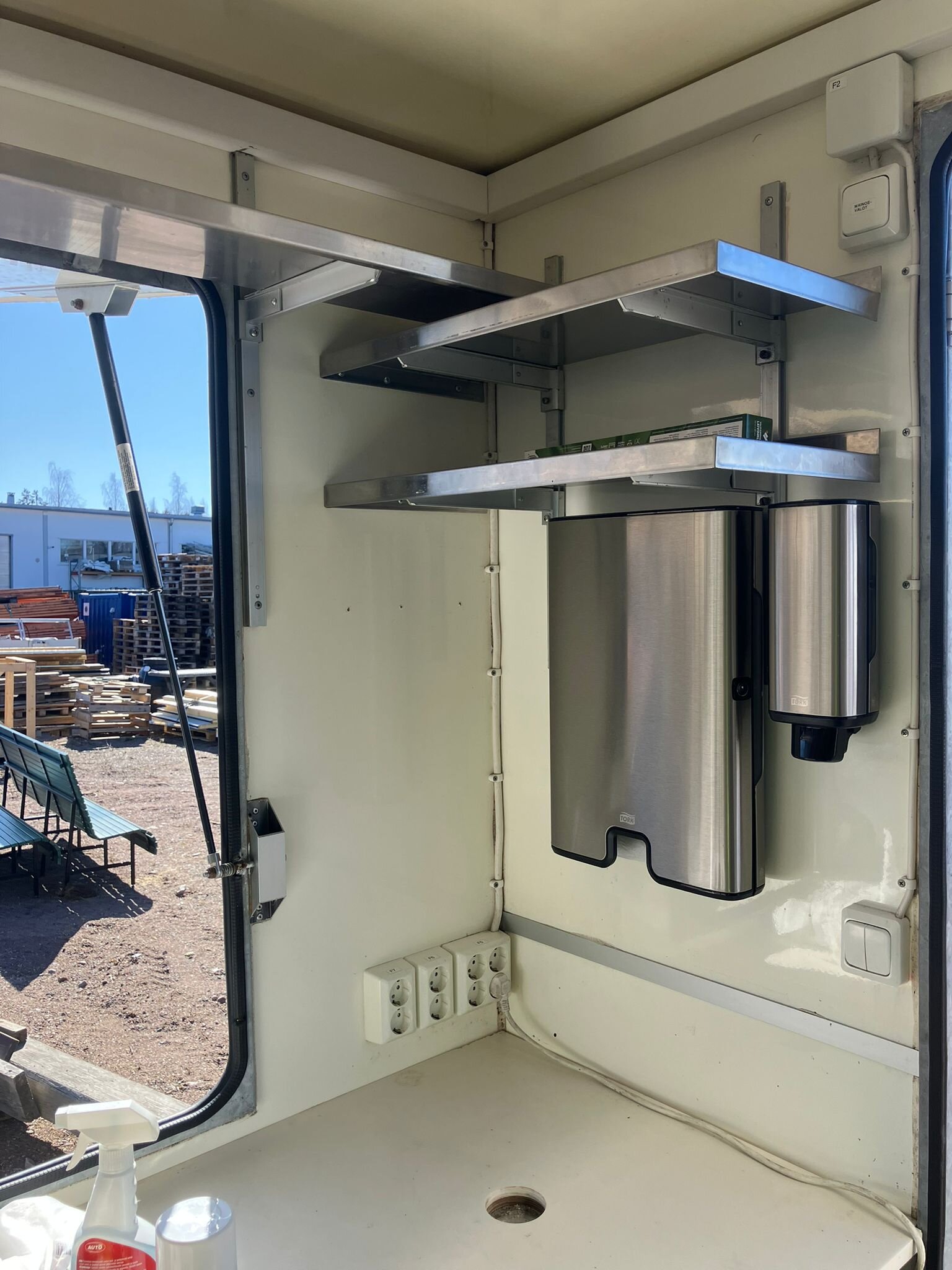 sähkö parila, 32 A sähkön syöttö. Vaunun pituus 3 m + aisa, leveys 2,4 m.