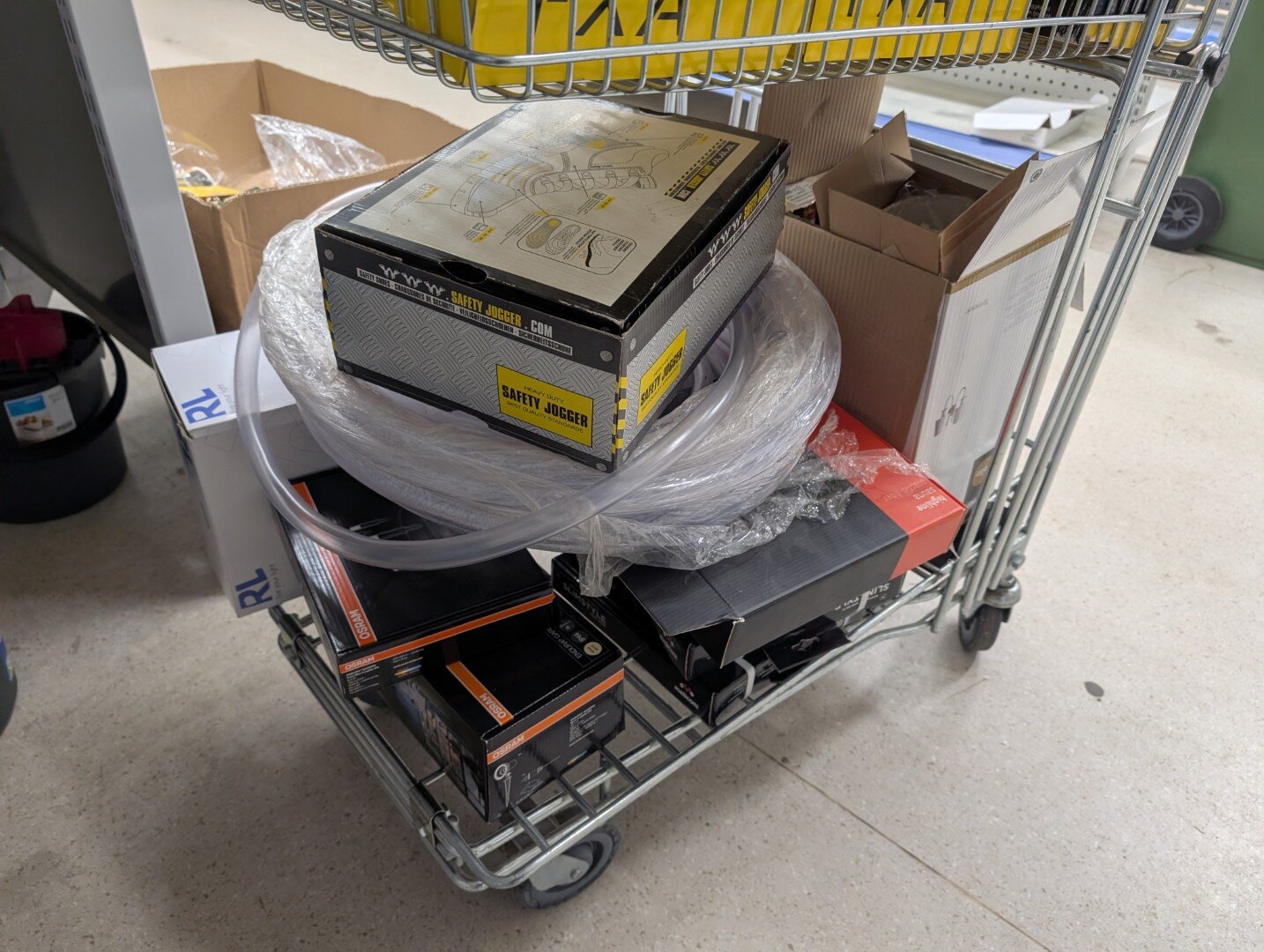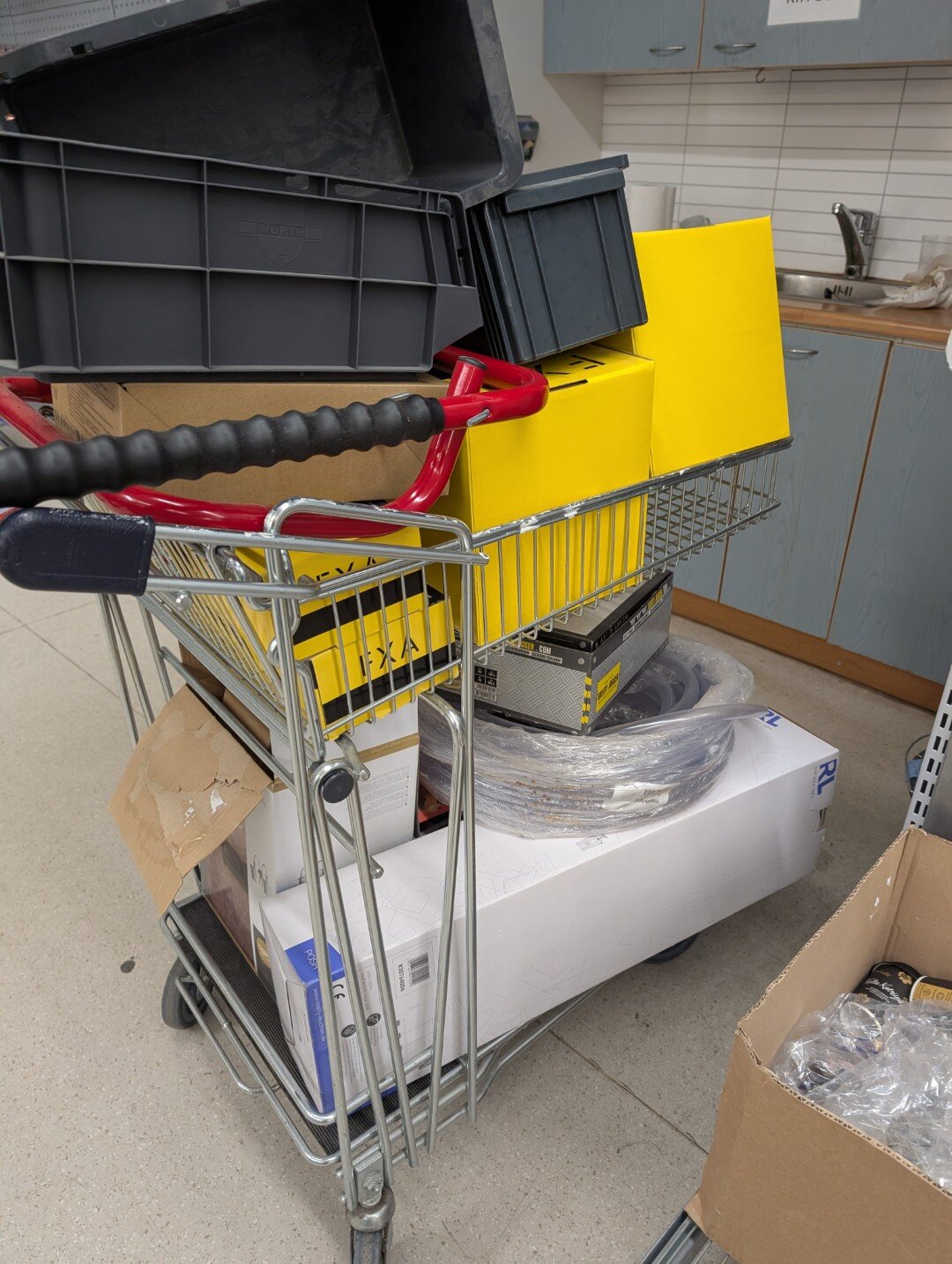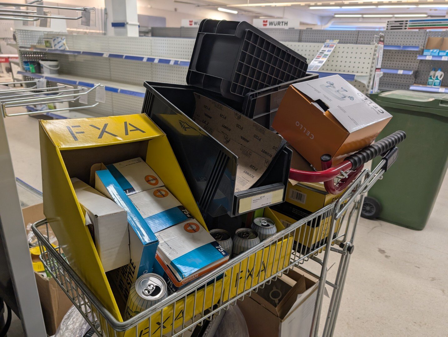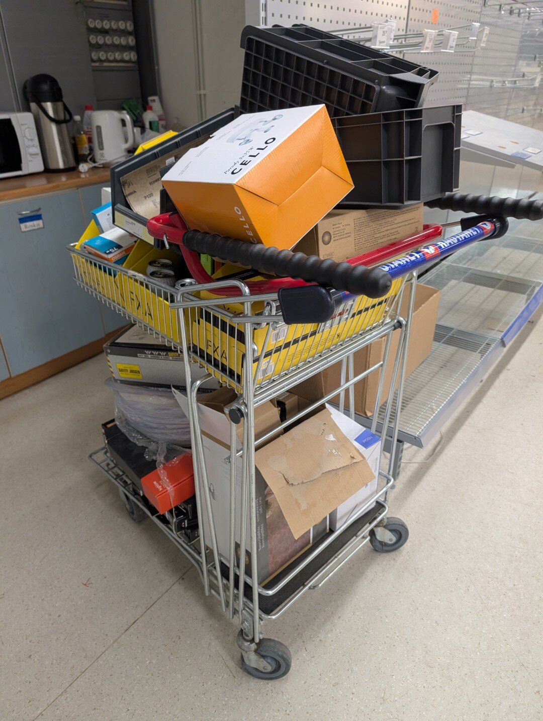 Ostoskärryllinen sekalaisia tuotteita