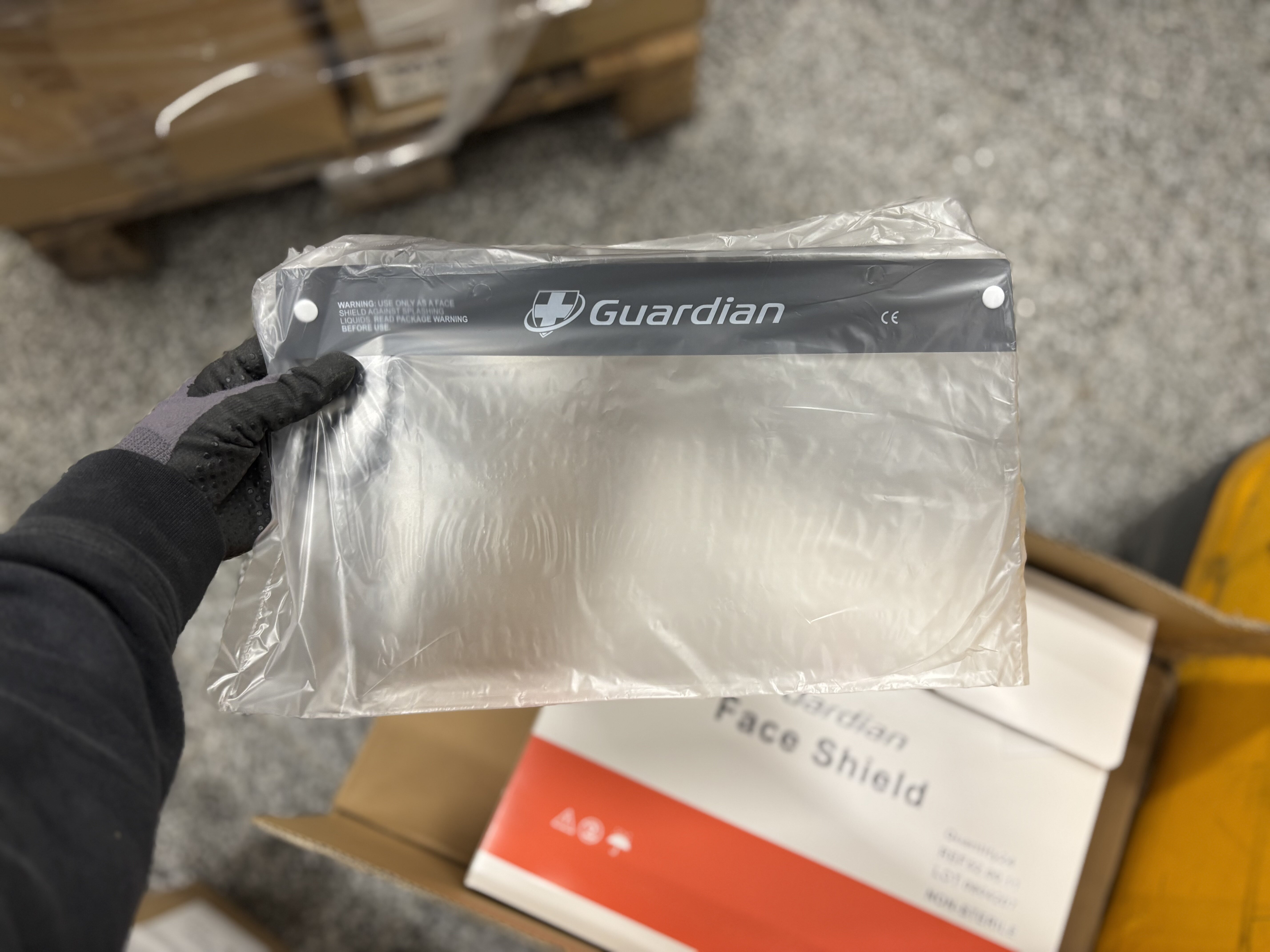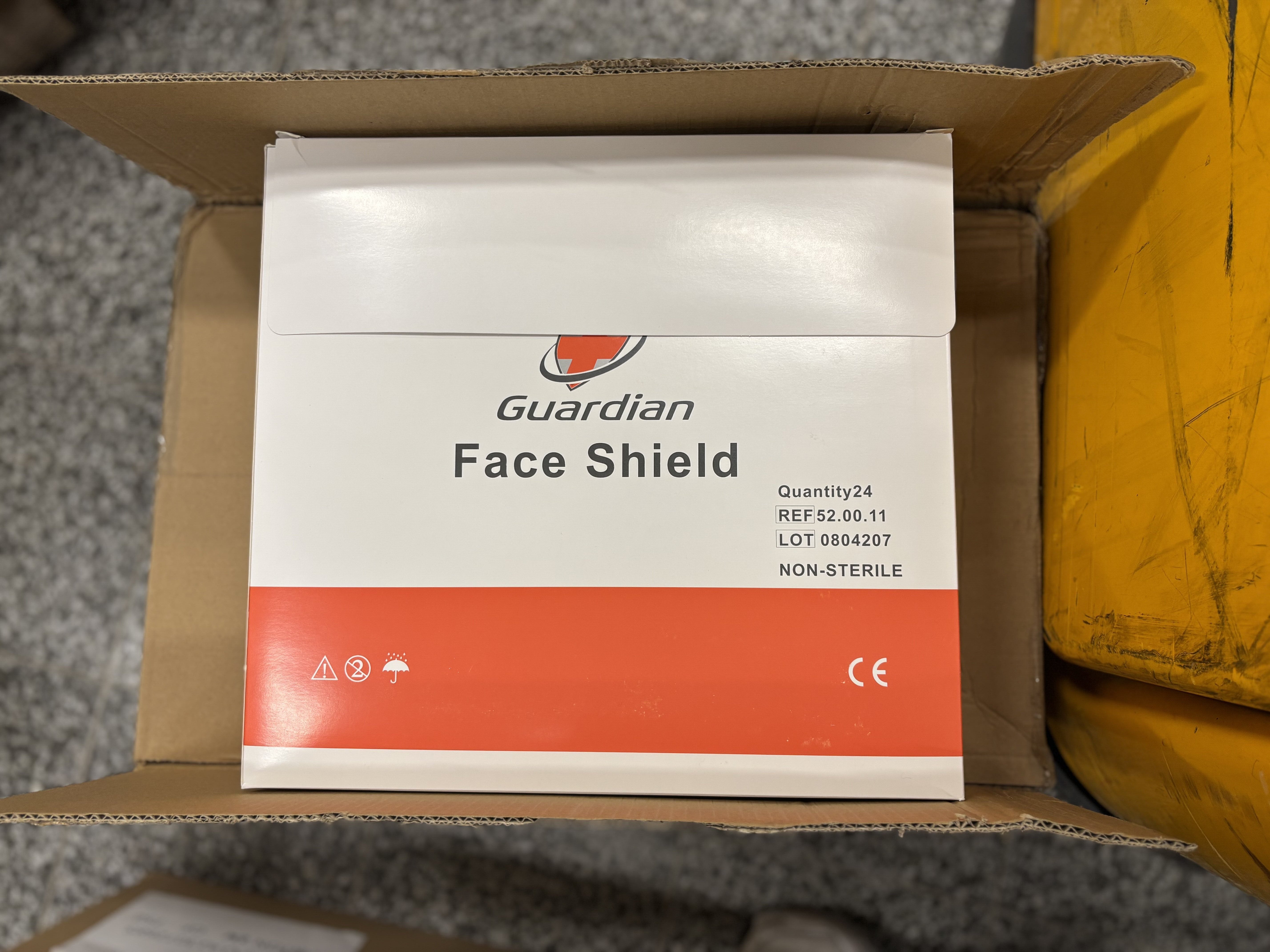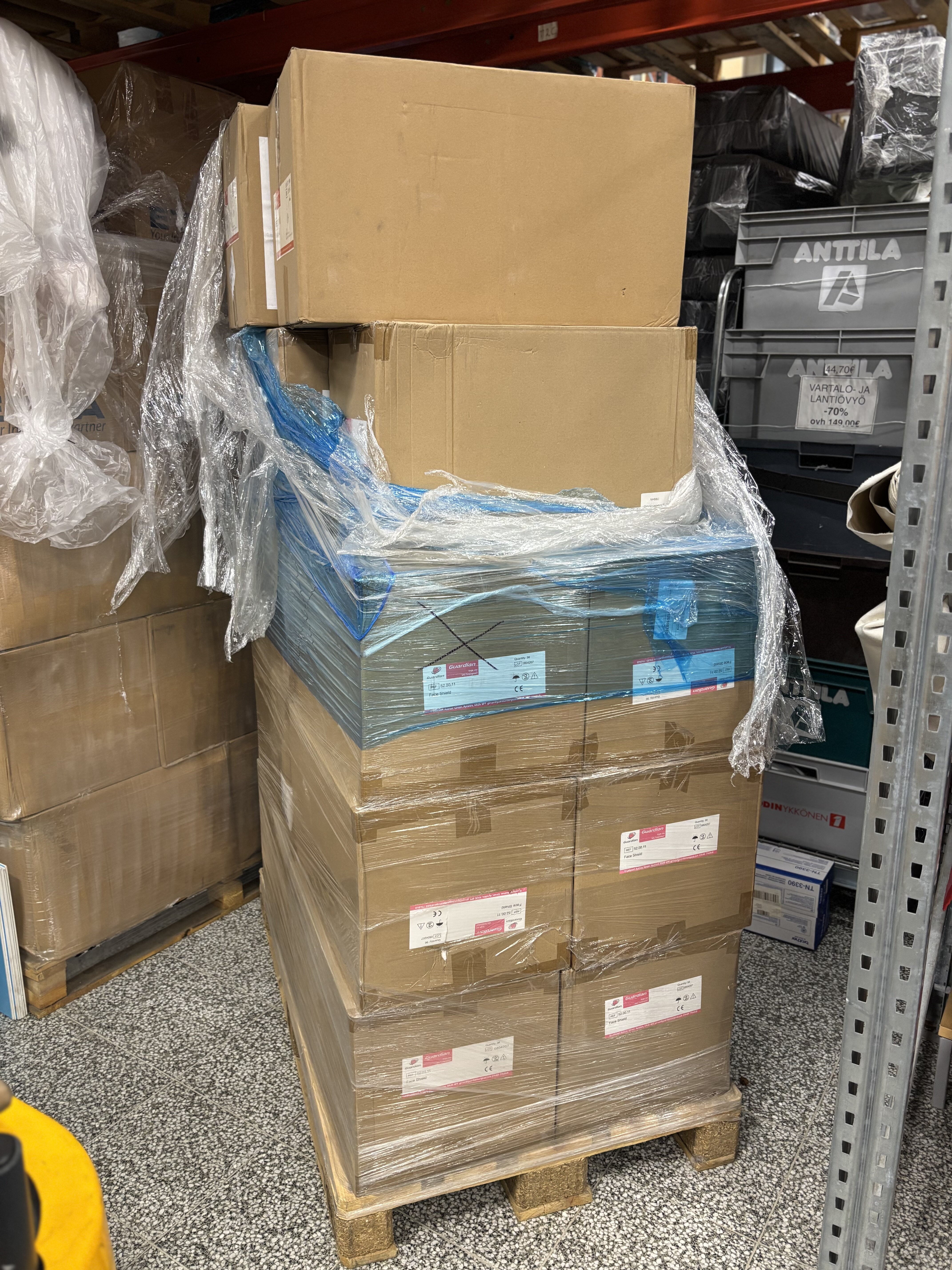 Guardian Face Shield 52.00.11, 52.00.13. 17 laatikkoa sisältää yhteensä yli 1700 kpl suojavisiirejä.