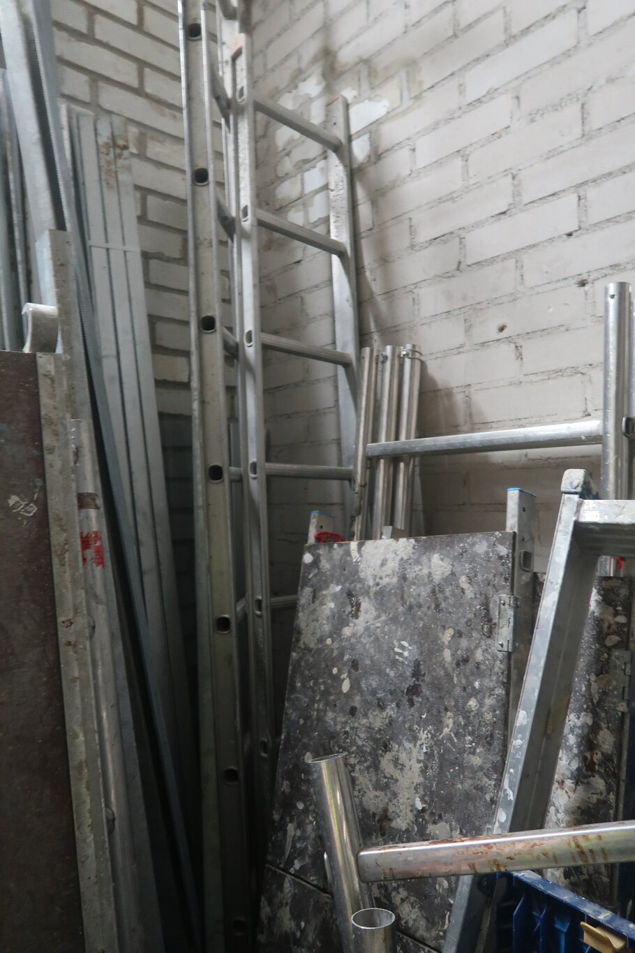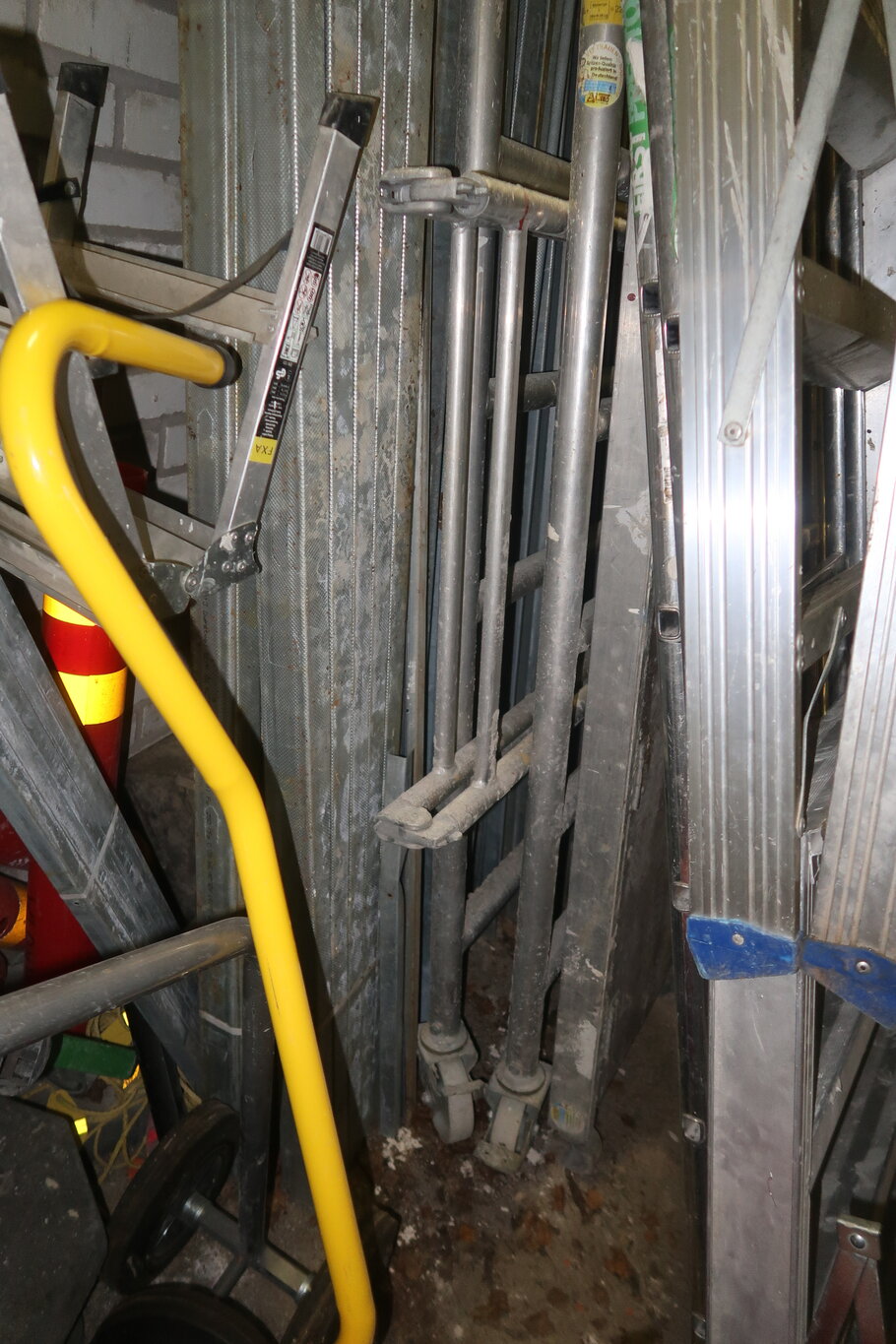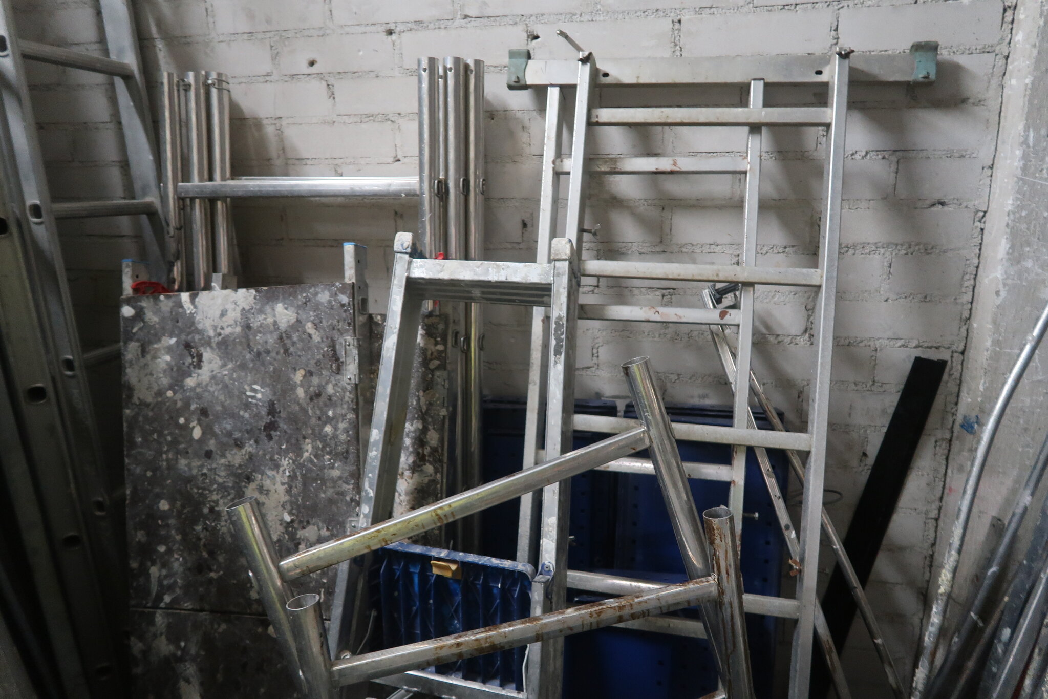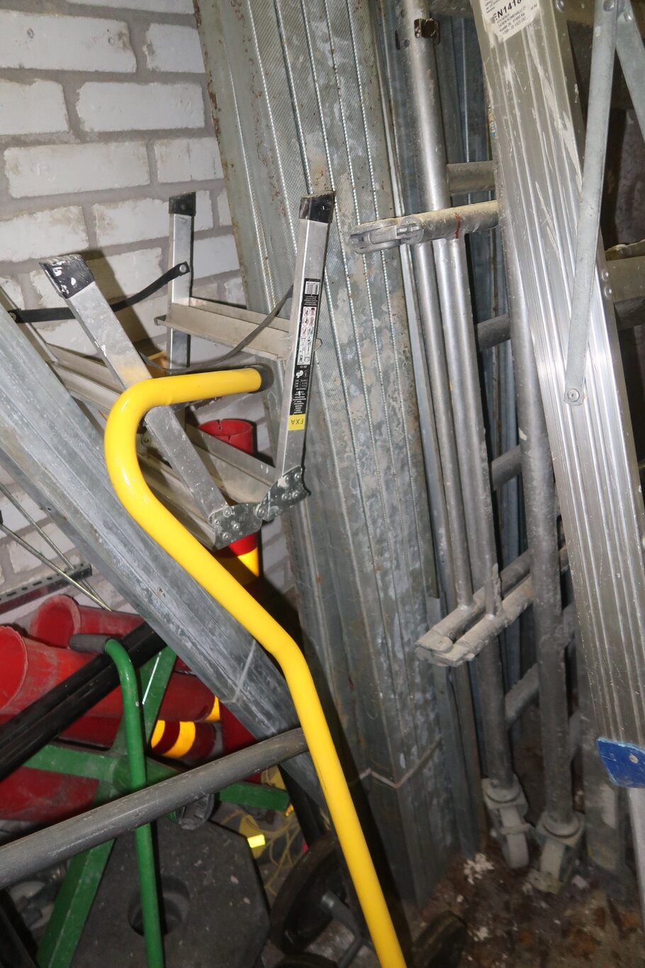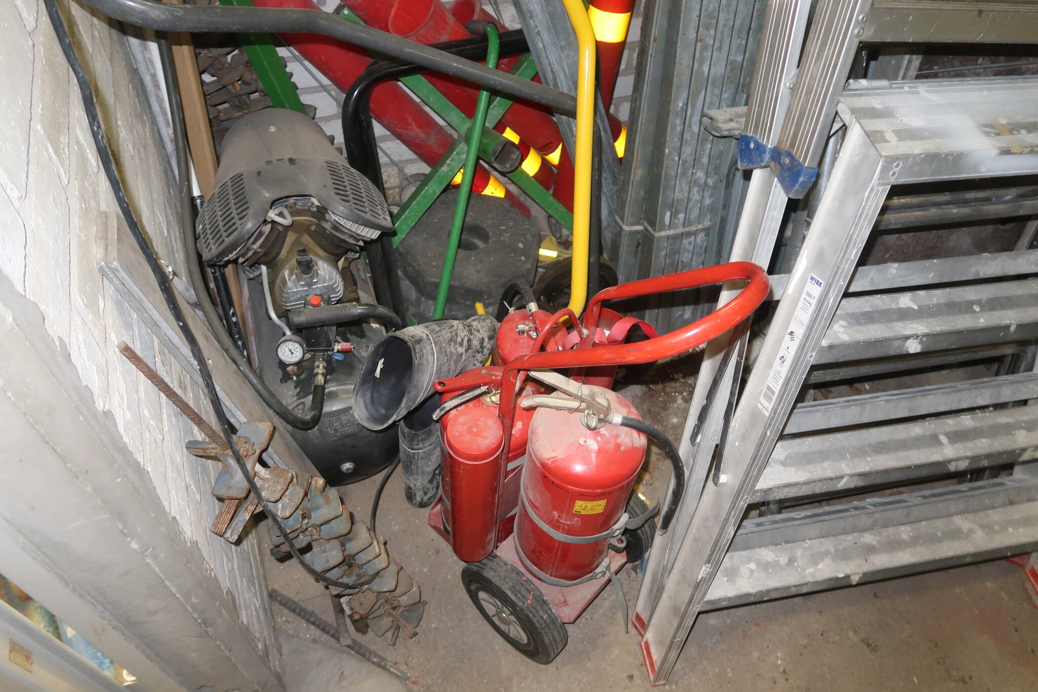 Tikkaita, telineosia, kompressori, lapioita ym. (28.)