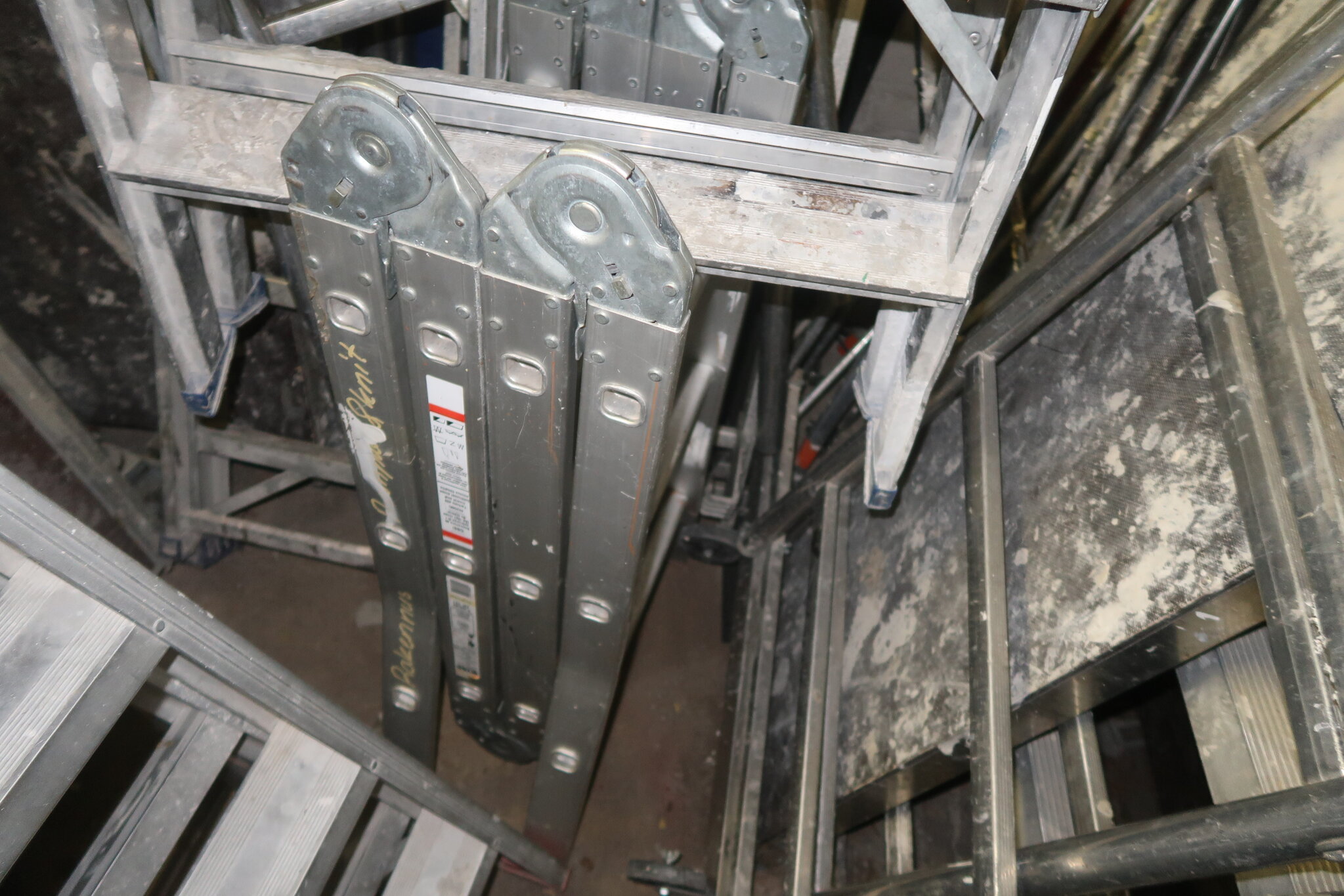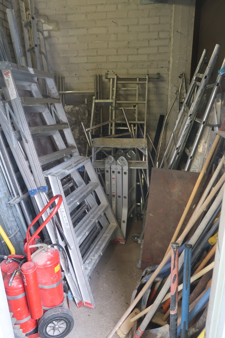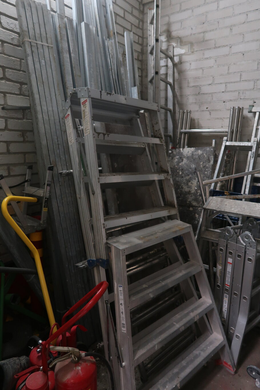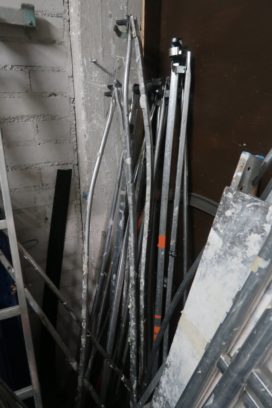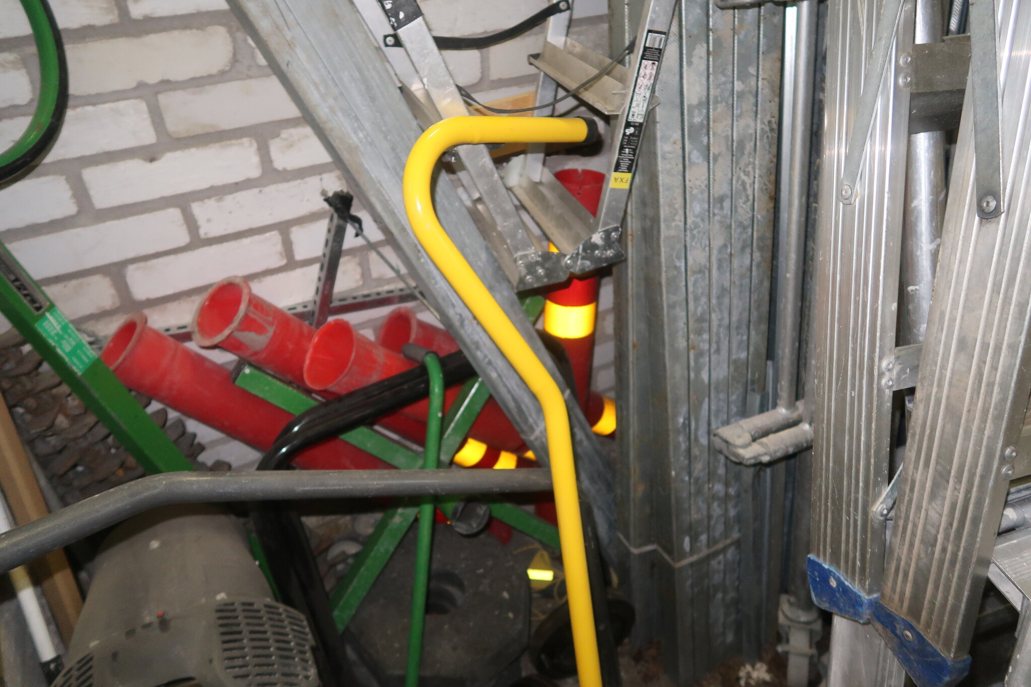 Tikkaita, telineosia, kompressori, lapioita ym. (28.)