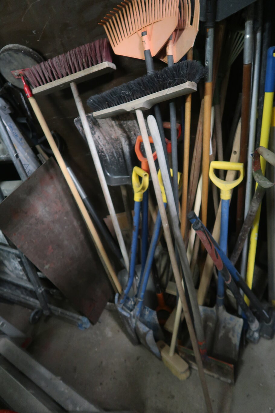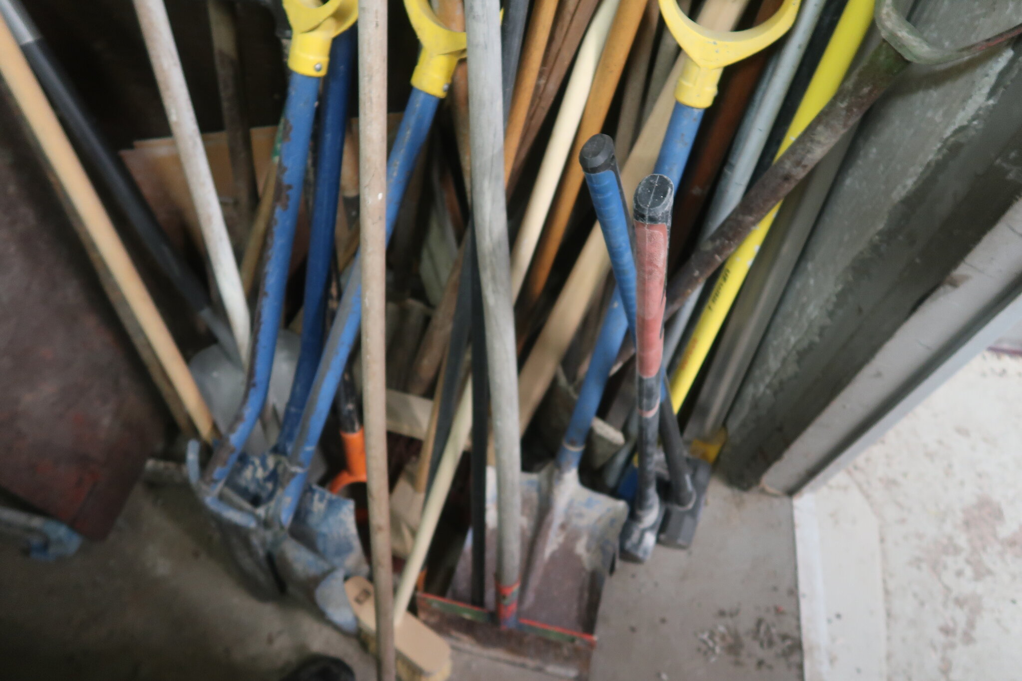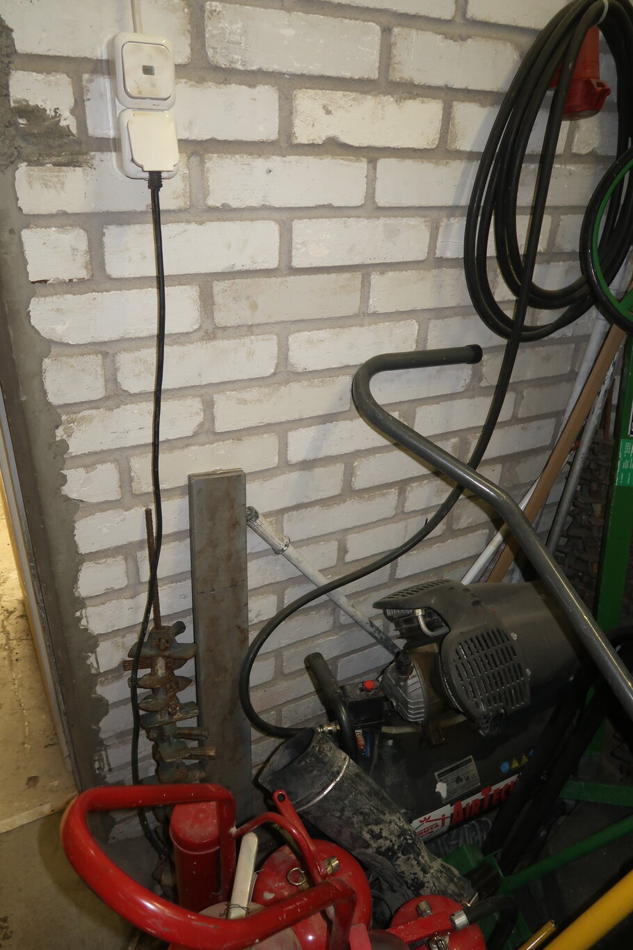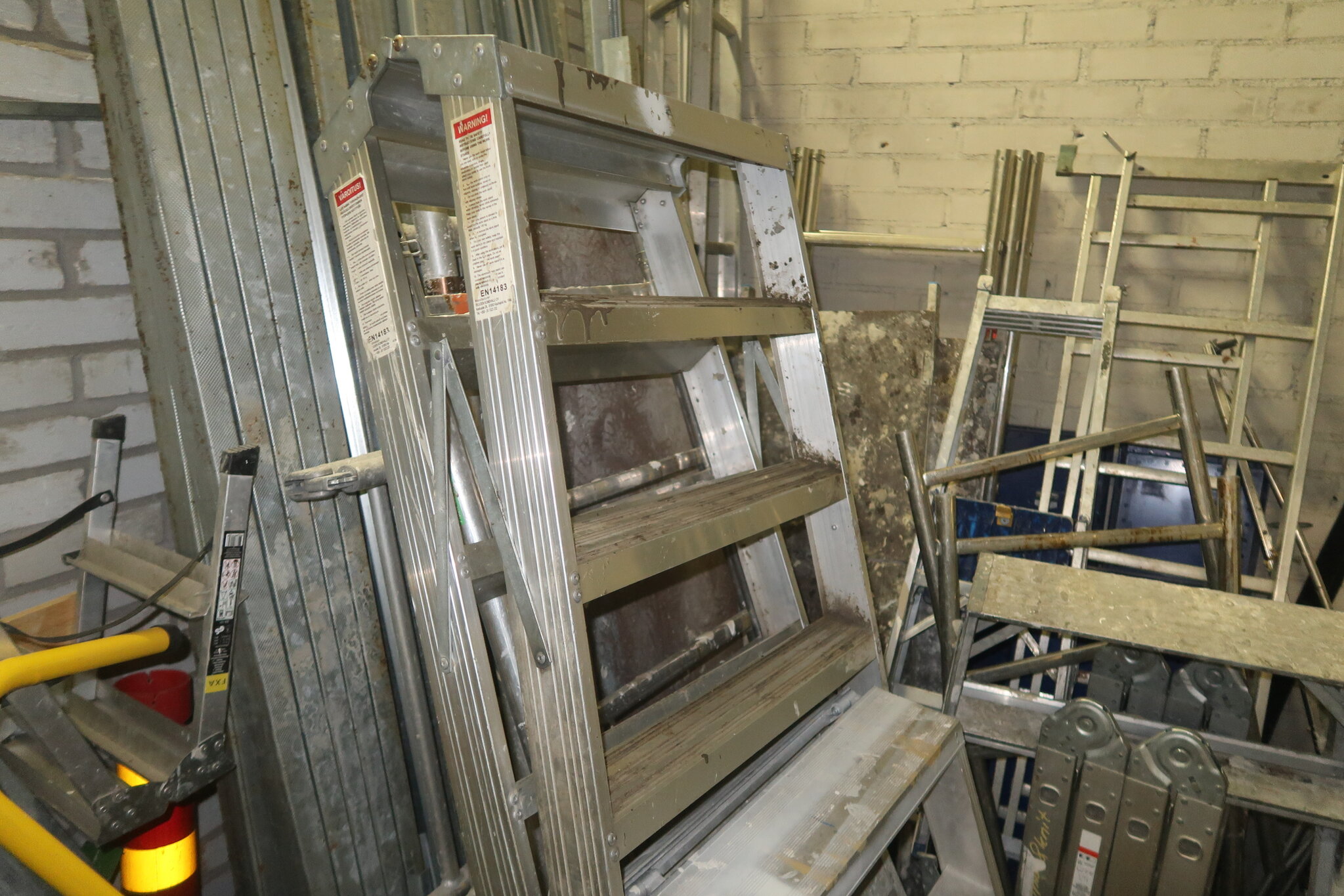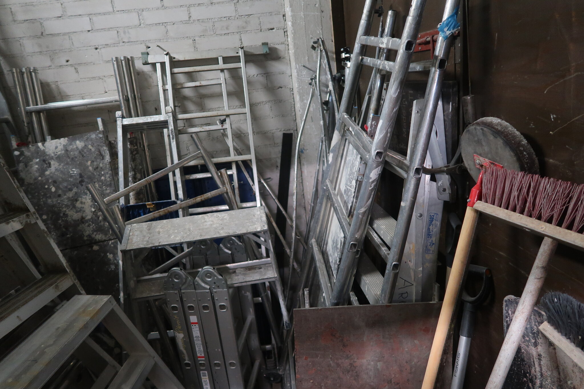 Tikkaita, telineosia, kompressori, lapioita ym. (28.)