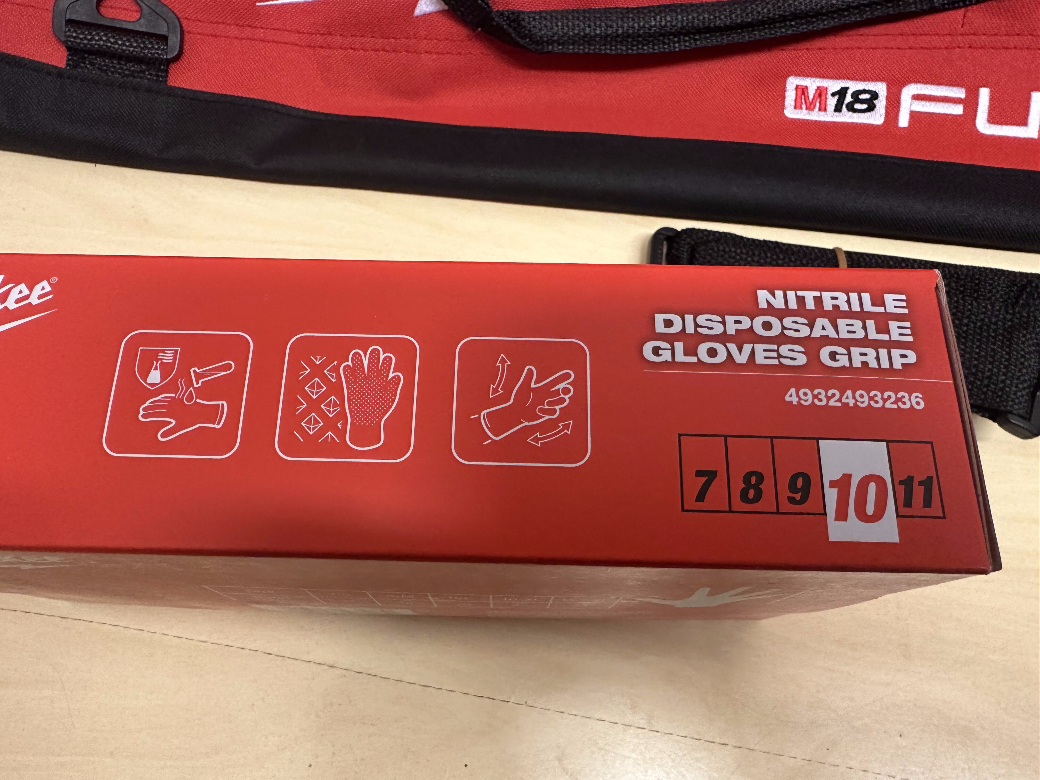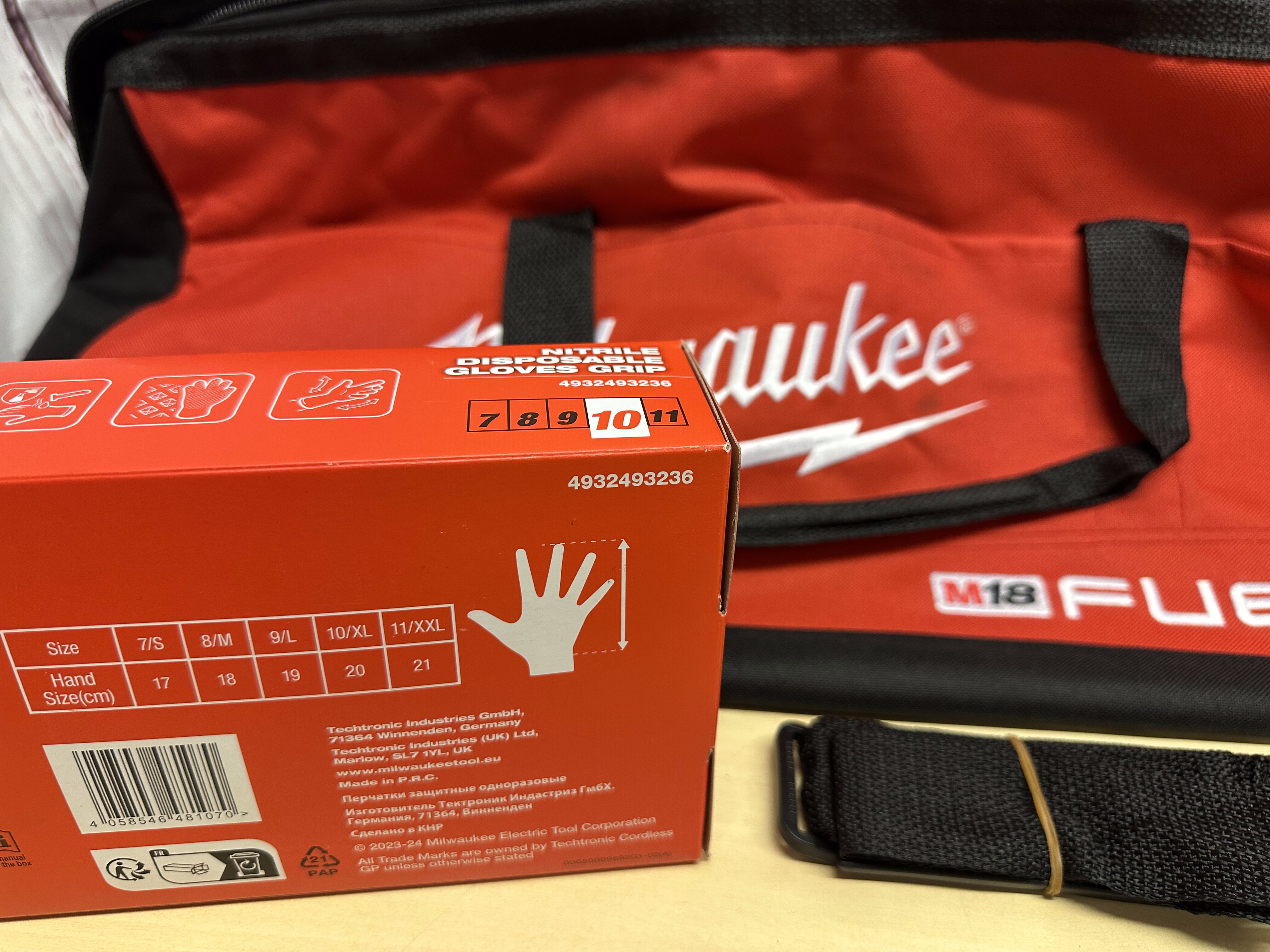 Milwaukee XL kassi + käsineet nr.10/XL,50kpl,uudet